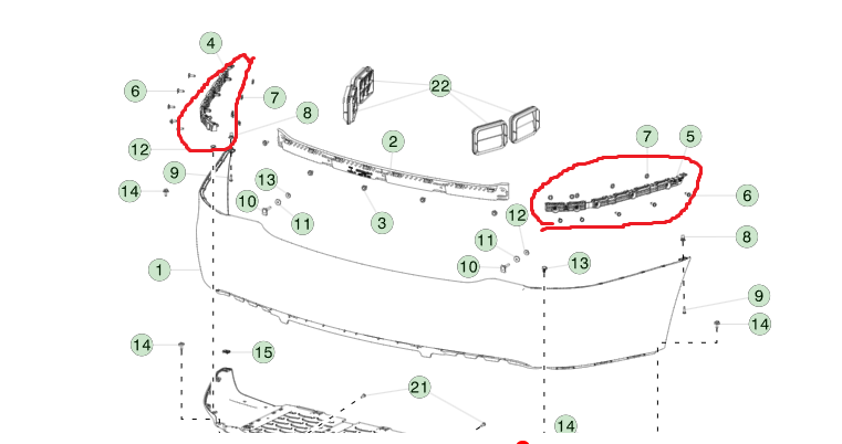 Tesla Model S (2012–2021) უკანა ბამპერის სამაგრი (მარცხენა და მარჯვენა),